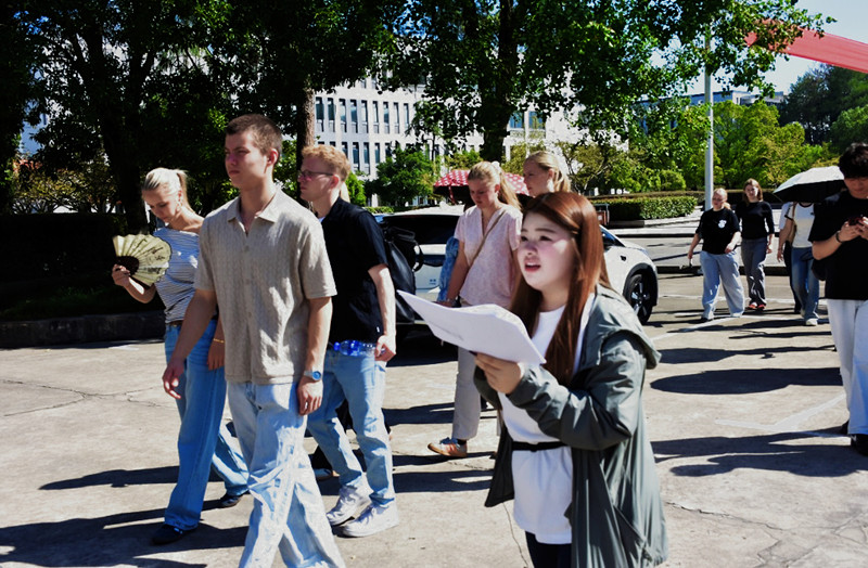 9月22日一早,丹麦师生与23级旅游英语的20多名志愿者在大门会面,并由杨天宇同学为他们进行校园导览,从校史馆到图书馆,从教学楼到操场,深入了解中国高校的办学理念与校园文化。