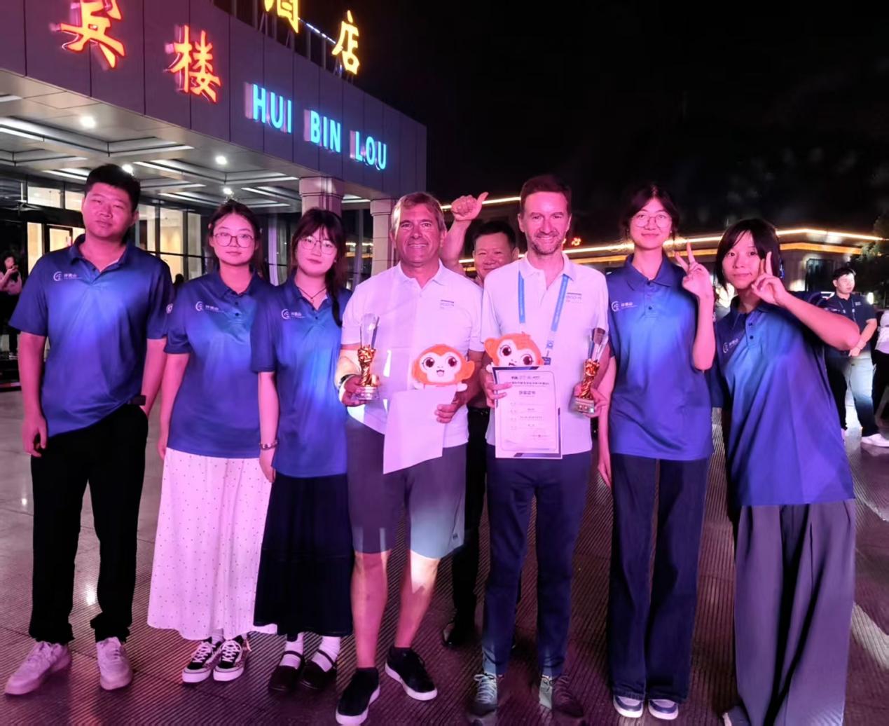 在主办方举办的颁奖典礼与市集晚会中,志愿者同学积极参与徽州非遗体验等跨文化互动,并与获得赛事第二名的葡萄牙选手合影留念;朱雁飞老师则协助黄山区融媒体,采访了在鱼灯表演环节中参与表演的两位来自瑞士的“黄山体育旅游推广大使”,为他们的交流提供德语翻译,助力外国友人深入了解中国非遗文化内涵,推动中外文化交流。