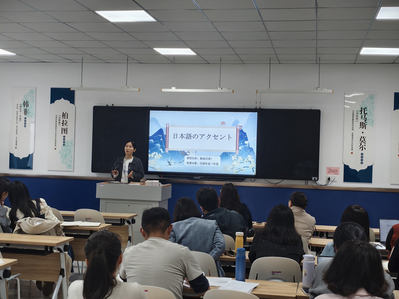 在现场说课环节,杨珊、俞也两位教师分别围绕不同语种、不同主题展示了精彩的教学设计与课堂实践。杨珊以英文篇目《The Land of the Lock》为载体,从教学目标、学情分析、教学流程、重难点突破、育人价值融入等维度,呈现了一堂逻辑清晰、设计精巧的示范课。说课过程中,杨珊将语言知识传授与文化素养培育深度融合,充分展现了以学生为中心的教学理念,为英语专业课堂教学创新提供了优秀范例。俞也则聚焦日语专业核心知识点“日语的声调”,针对日语声调的规律、教学难点、学生常见误区等问题,分享了沉浸式、互动式的教学方法,通过生动的案例与实操设计,为小语种课堂教学提质增效提供了新思路,充分体现了专业教研室在夯实语言基础、打磨课堂细节上的不懈追求。
